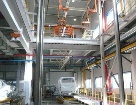 輕型車技改項目涂裝生產線工程機械化輸送系統-地面滑撬輸送系統包括生產線地面工件輸送所用的滾床、單鏈輸送機、工藝雙鏈輸送機、移行機、升降機、堆/拆垛機、叉式移載機、前處理滑撬、面漆滑撬及其電氣控制系統等。